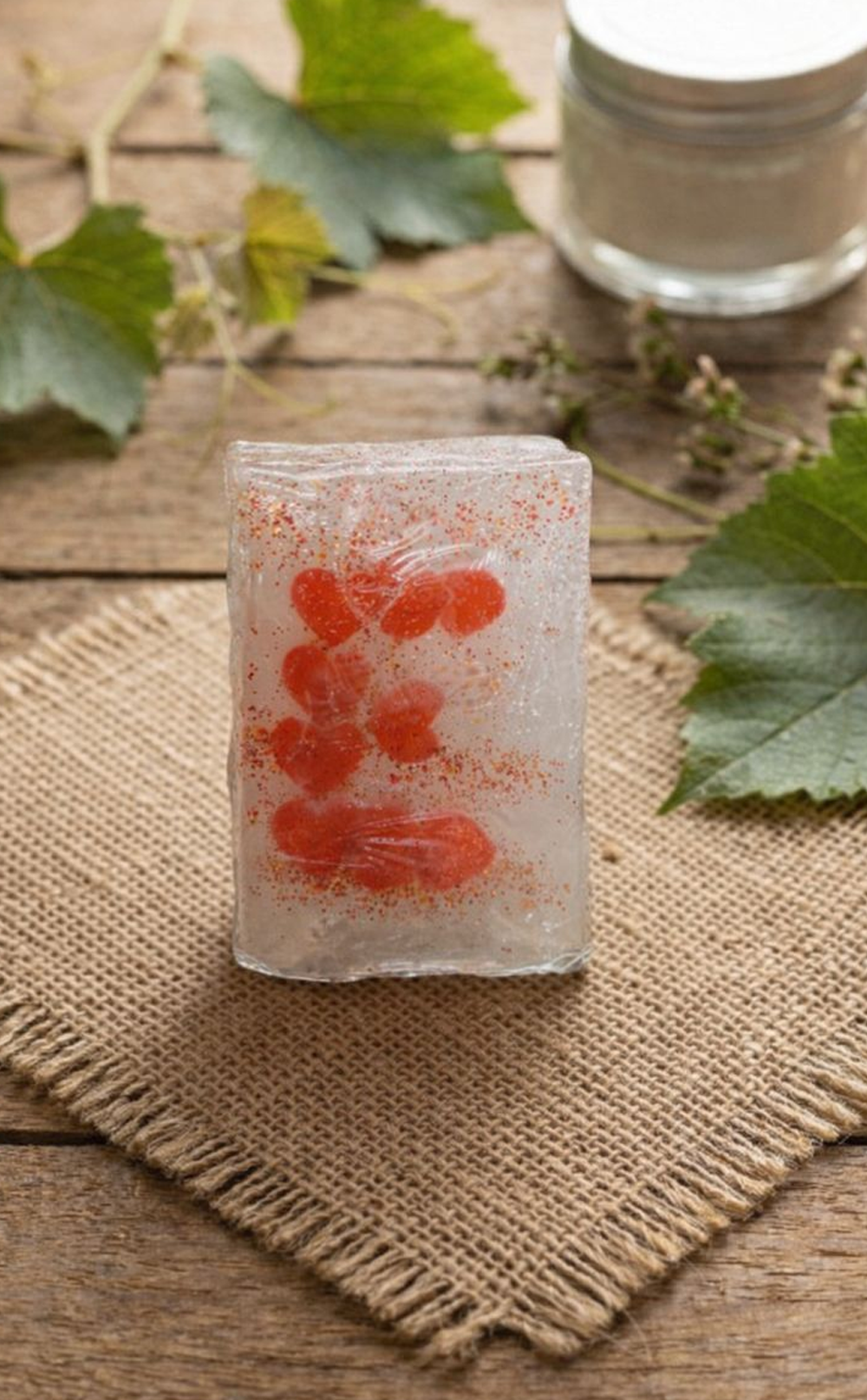 İçerisindeki kalp detaylarıyla öne çıkan şeffaf el yapımı dekoratif sabun, zarif görünümü ve hoş kokusuyla yaşam alanlarınıza romantik bir dokunuş katar. Banyo ve dolap kokusu olarak kullanılabileceği gibi dekoratif amaçlı da tercih edilebilir. Özellikle Sevgililer Günü ve özel günler için anlamlı, şık ve estetik bir hediye alternatifi sunar.